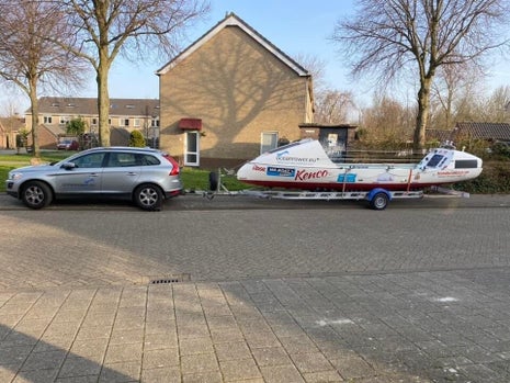 Daarna de boot naar Castricum gebracht waar de schipper Ralph Tuijn woont die hem de komende week verder klaarmaakt voor vertrek op 22 maart naar Portimao in Portugal