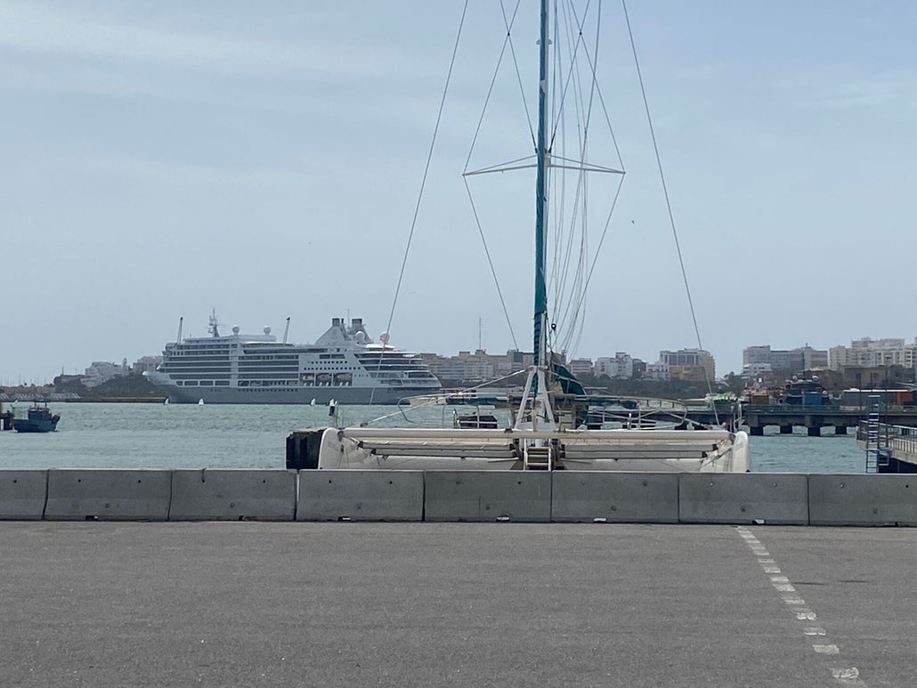 Aankomst van Ralph Tuijn-(schipper) met boot in Portimao